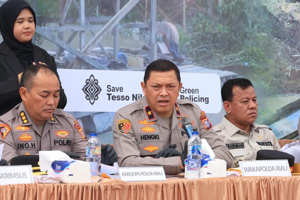 Kuantan Singingi-Wakapolda Riau Brigjen Hengki Haryadi memimpin langsung jumpa pers pengungkapan kasus Pertambangan Emas Tanpa Izin (PETI) di wilayah hukum Polres Kuantan Singingi, Kamis (23/4/2026).